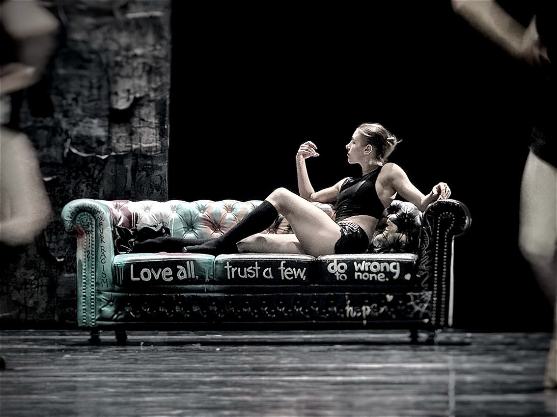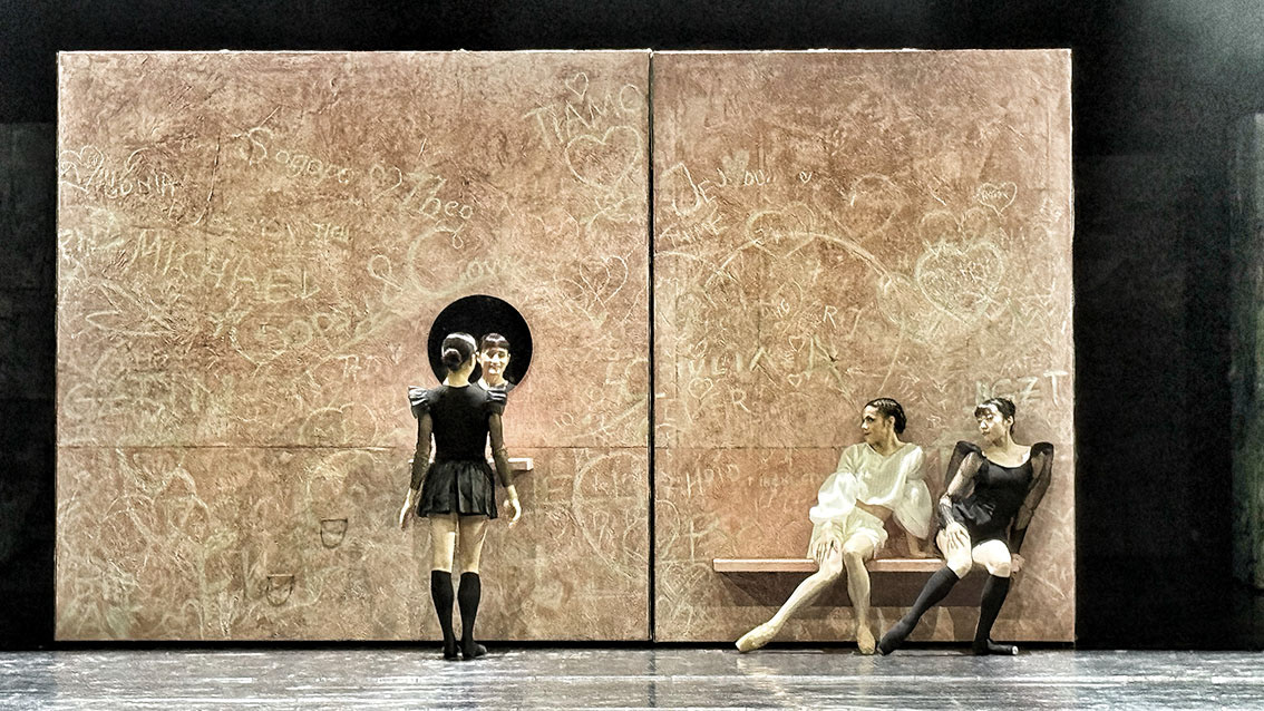 "R+J Romeo i Julia" Teatr Wielki w Poznaniu reżyseria i choreografia: Robert Bondara sound design: Marcin Baran scenografia i kostiumy: Diana Marszałek Projekcje multimedialne: Jago Chalcinska Reżyseria świateł: Wiktor Kuźma